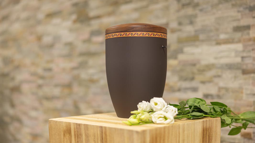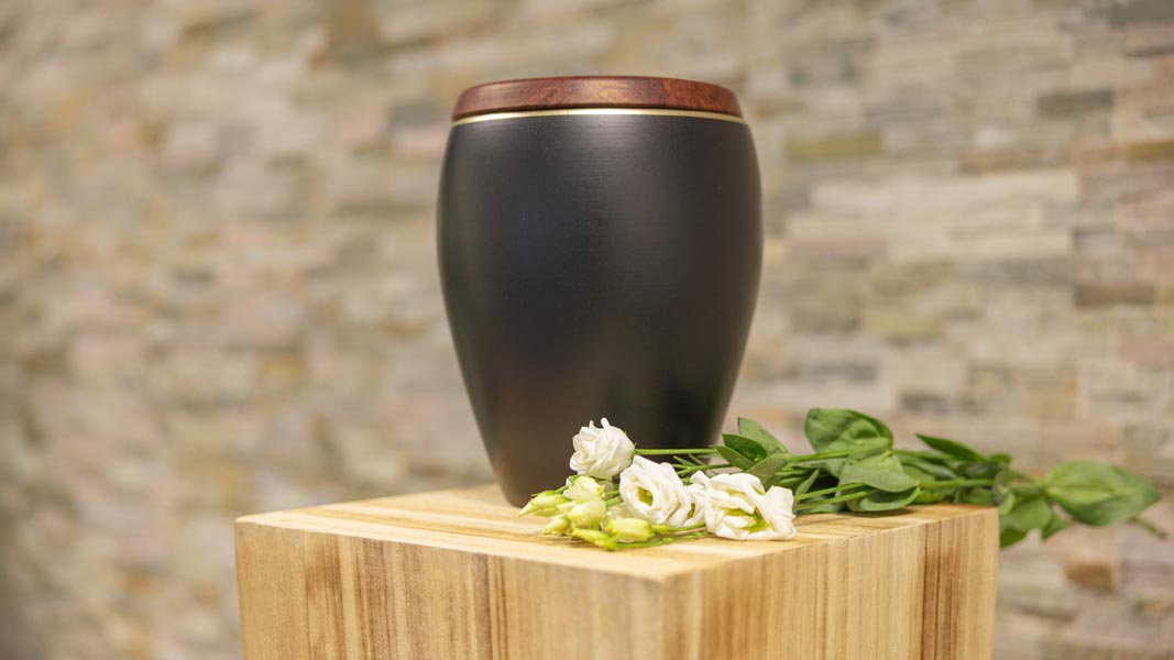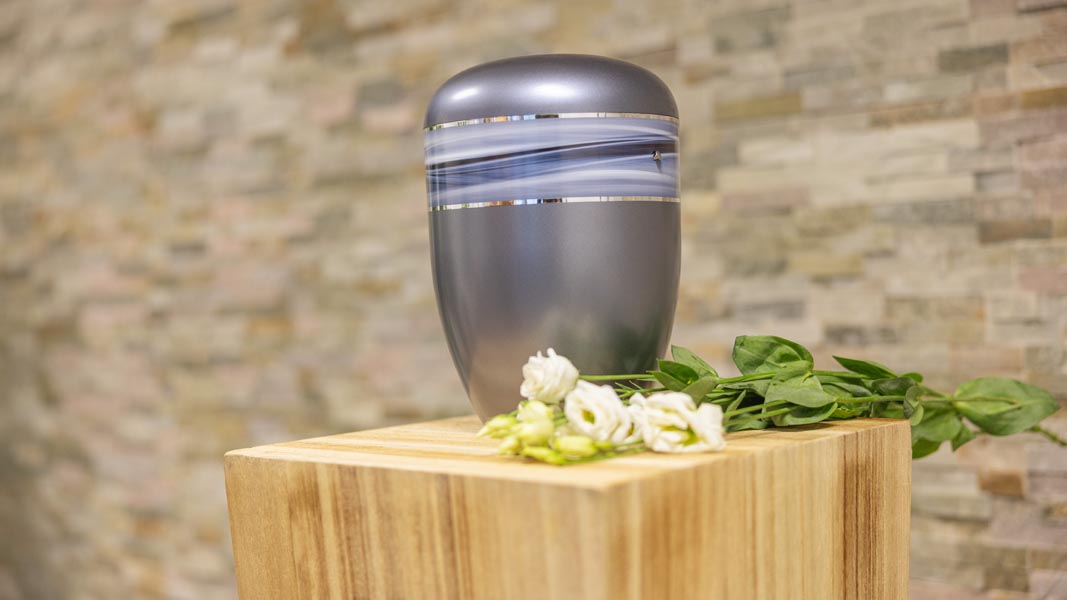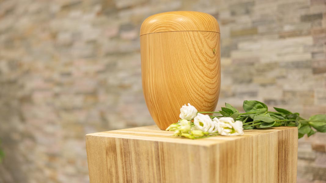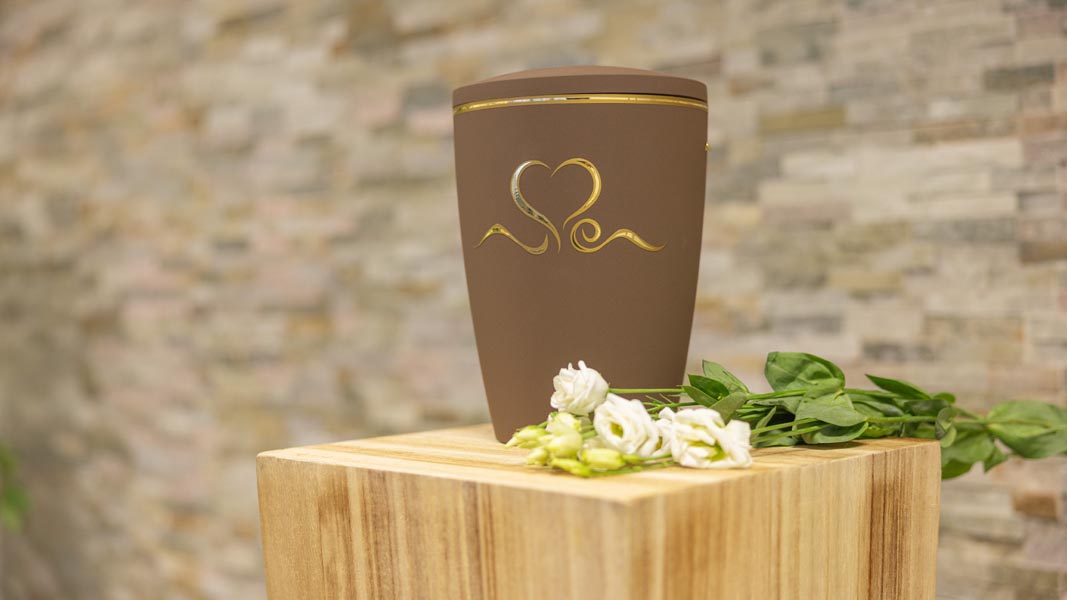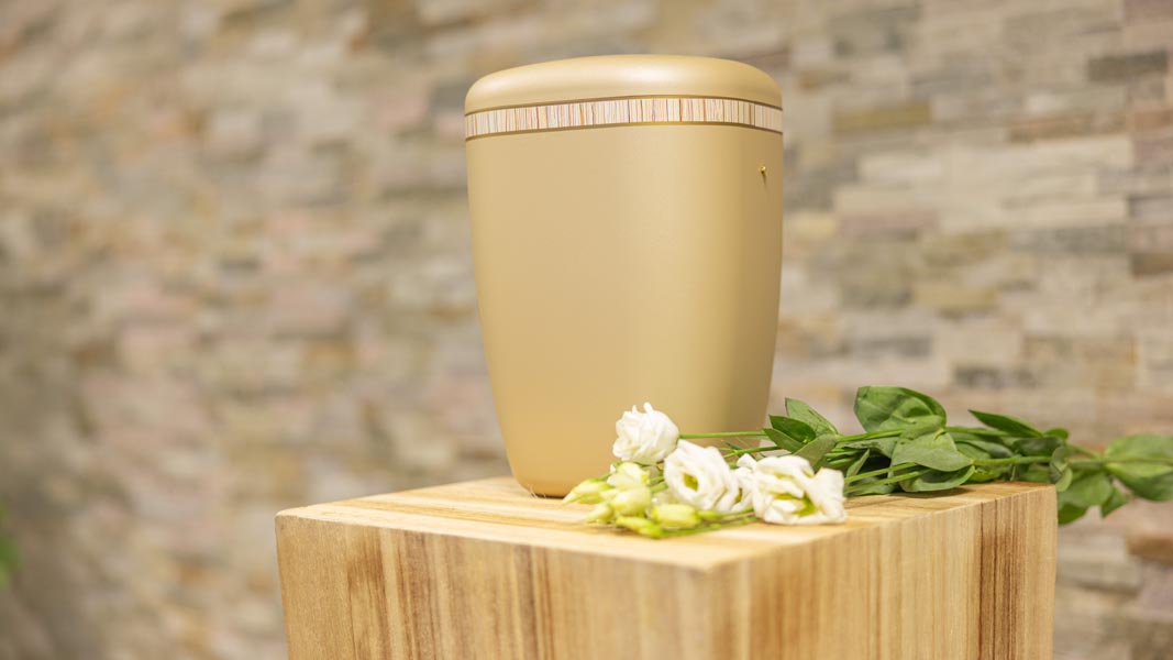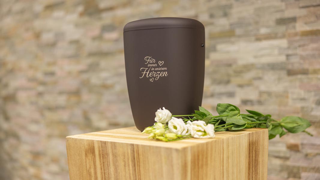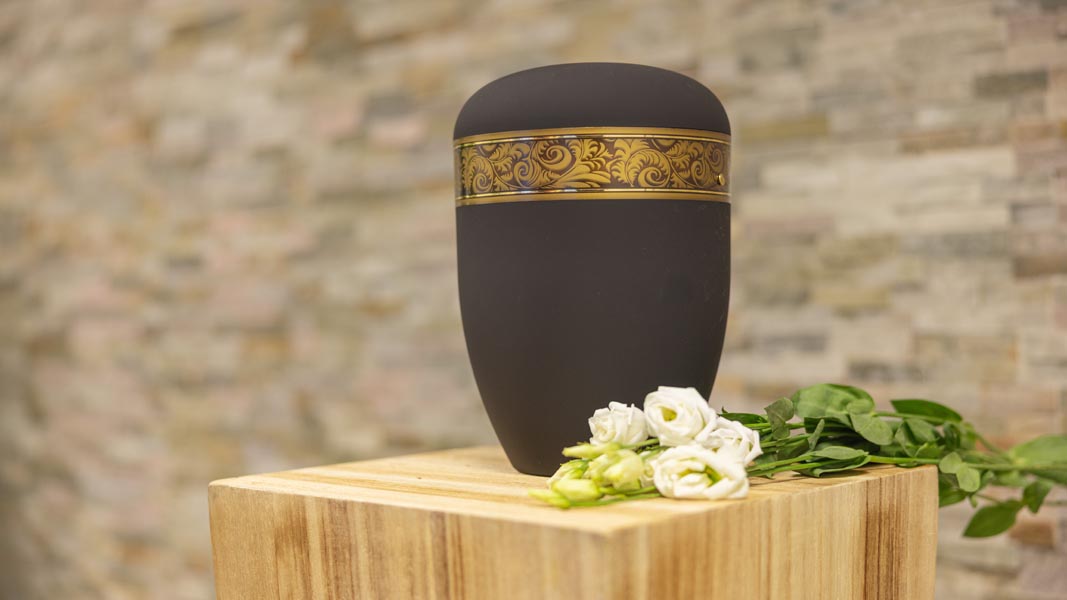 Wir unterstützen Sie einfühlsam bei der Auswahl der passenden Urne und stehen Ihnen im Trauerfall jederzeit zuverlässig zur Seite.