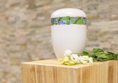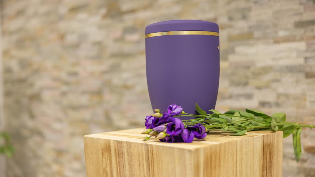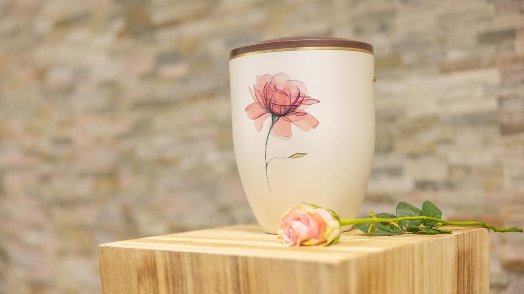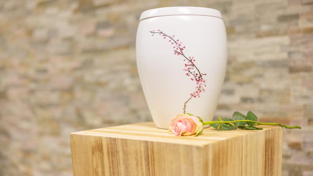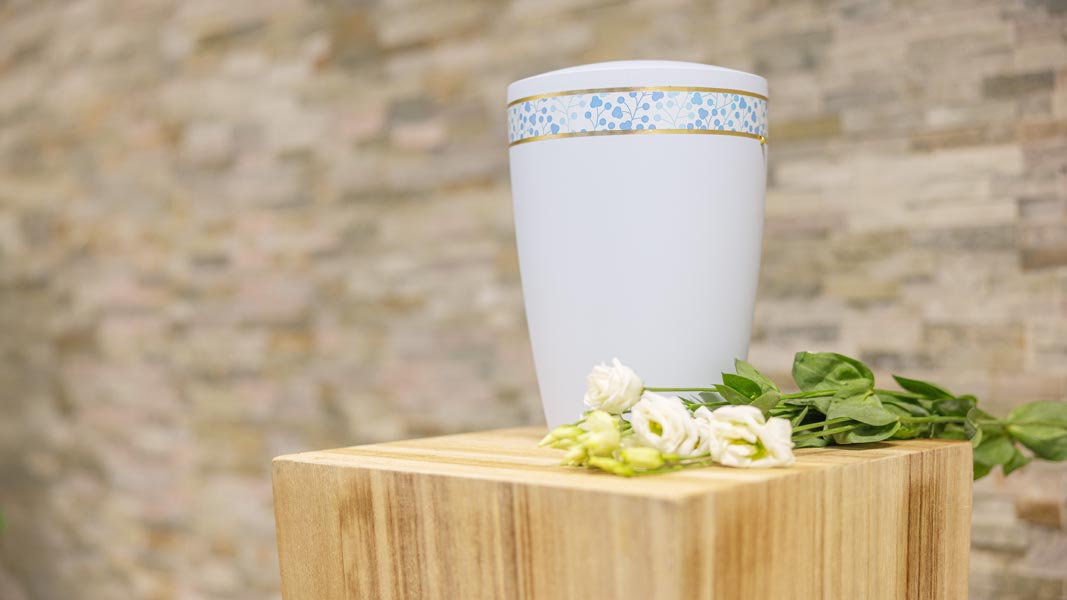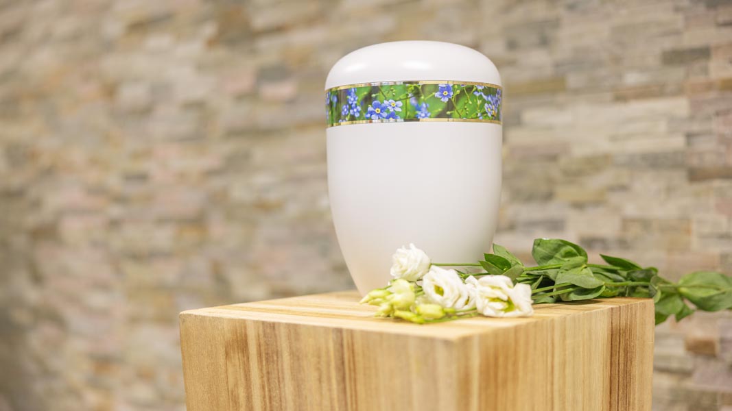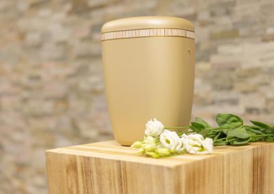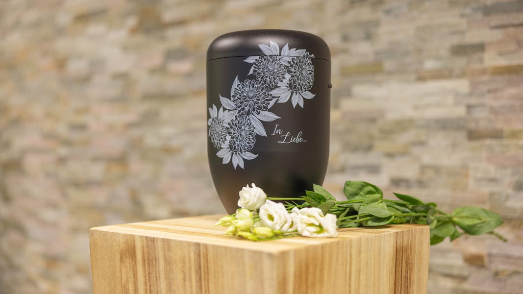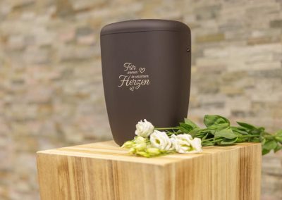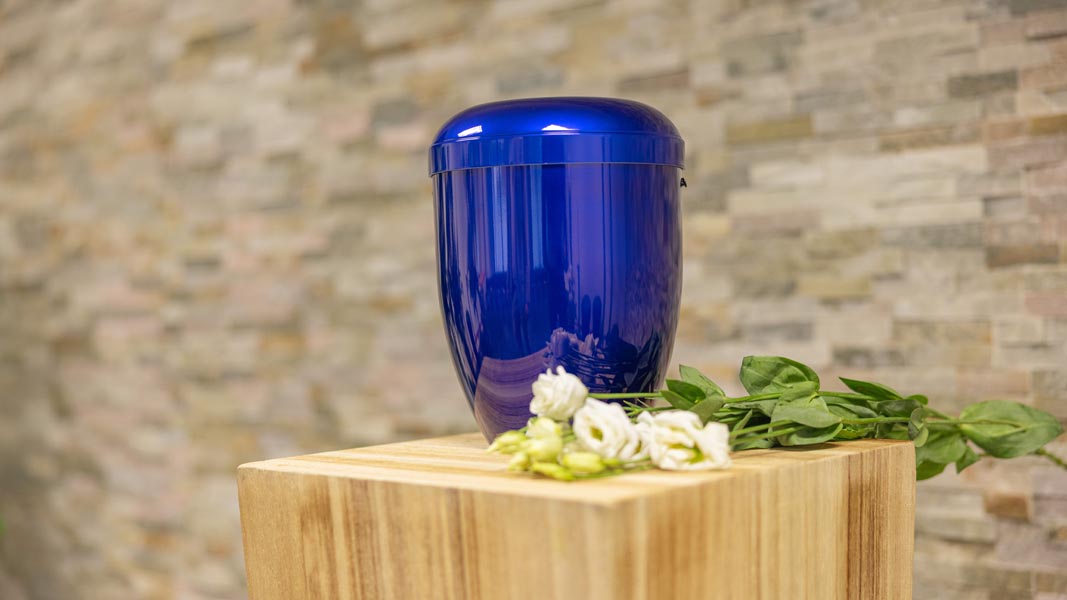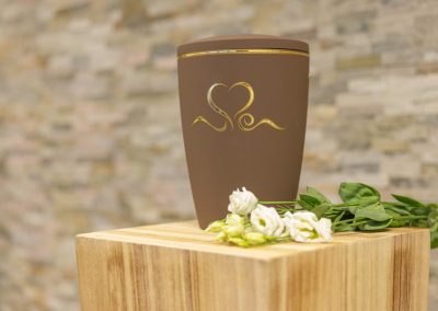 Wir unterstützen Sie einfühlsam bei der Auswahl der passenden Urne und stehen Ihnen im Trauerfall jederzeit zuverlässig zur Seite.