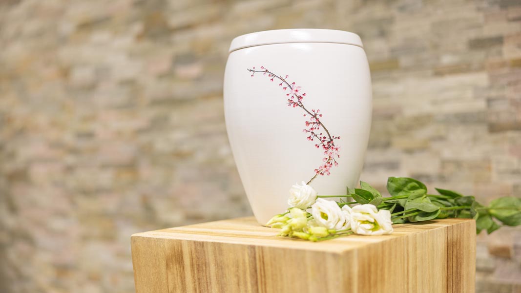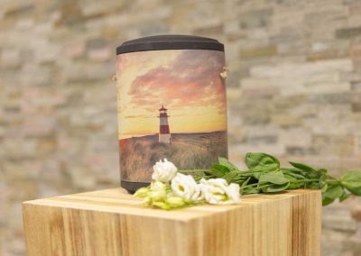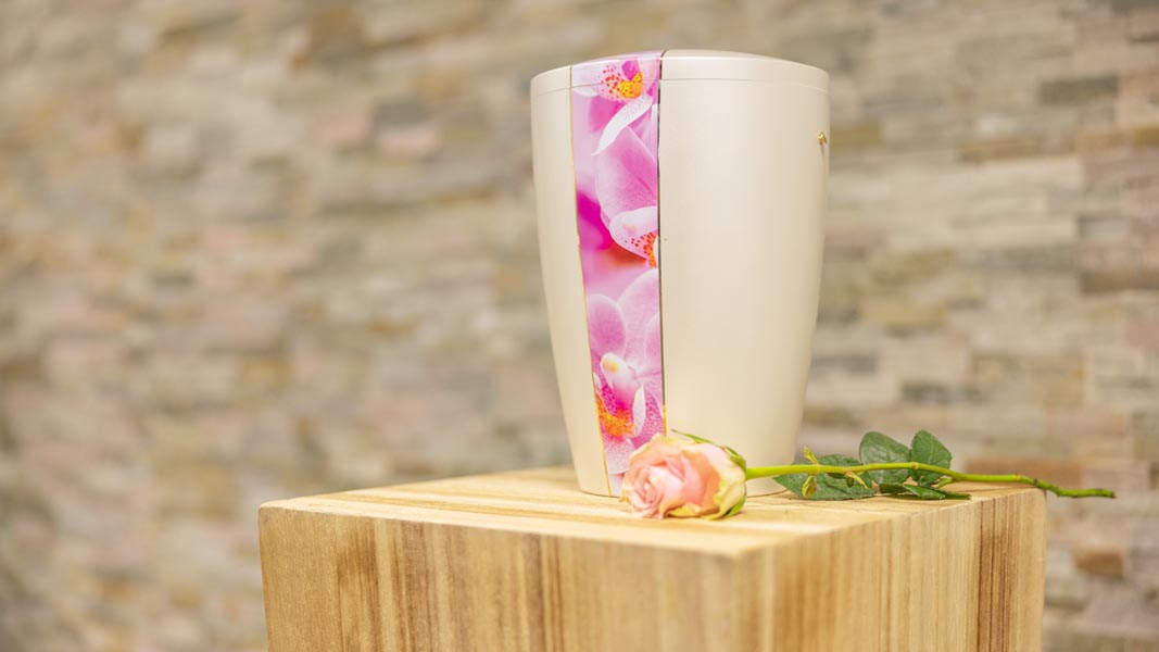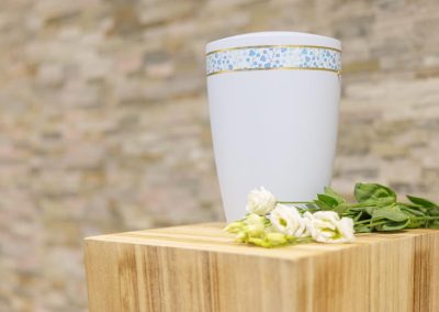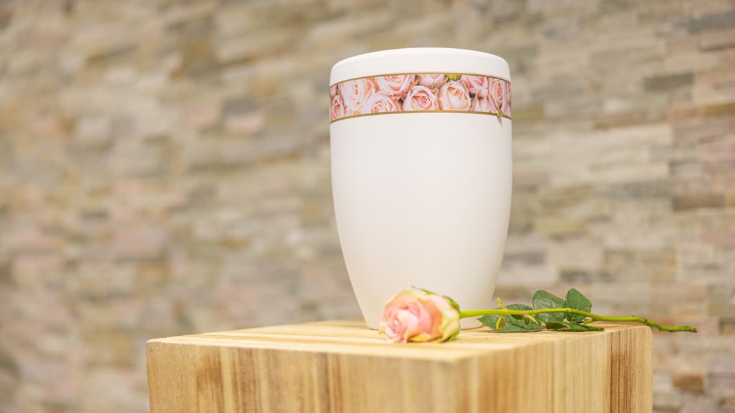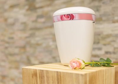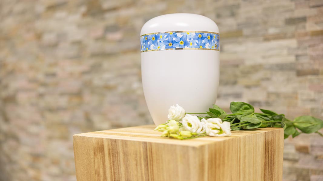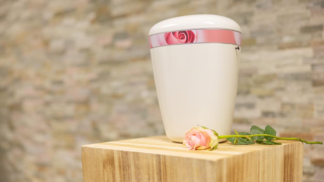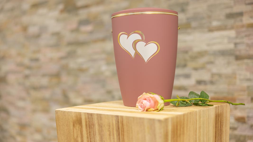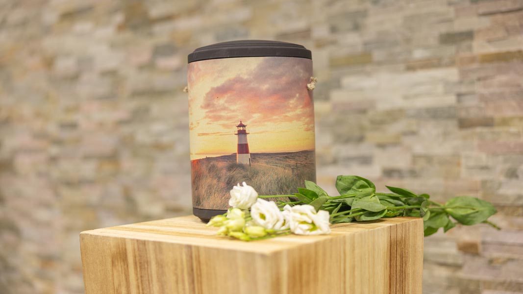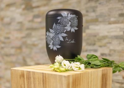 Wir unterstützen Sie einfühlsam bei der Auswahl der passenden Urne und stehen Ihnen im Trauerfall jederzeit zuverlässig zur Seite.